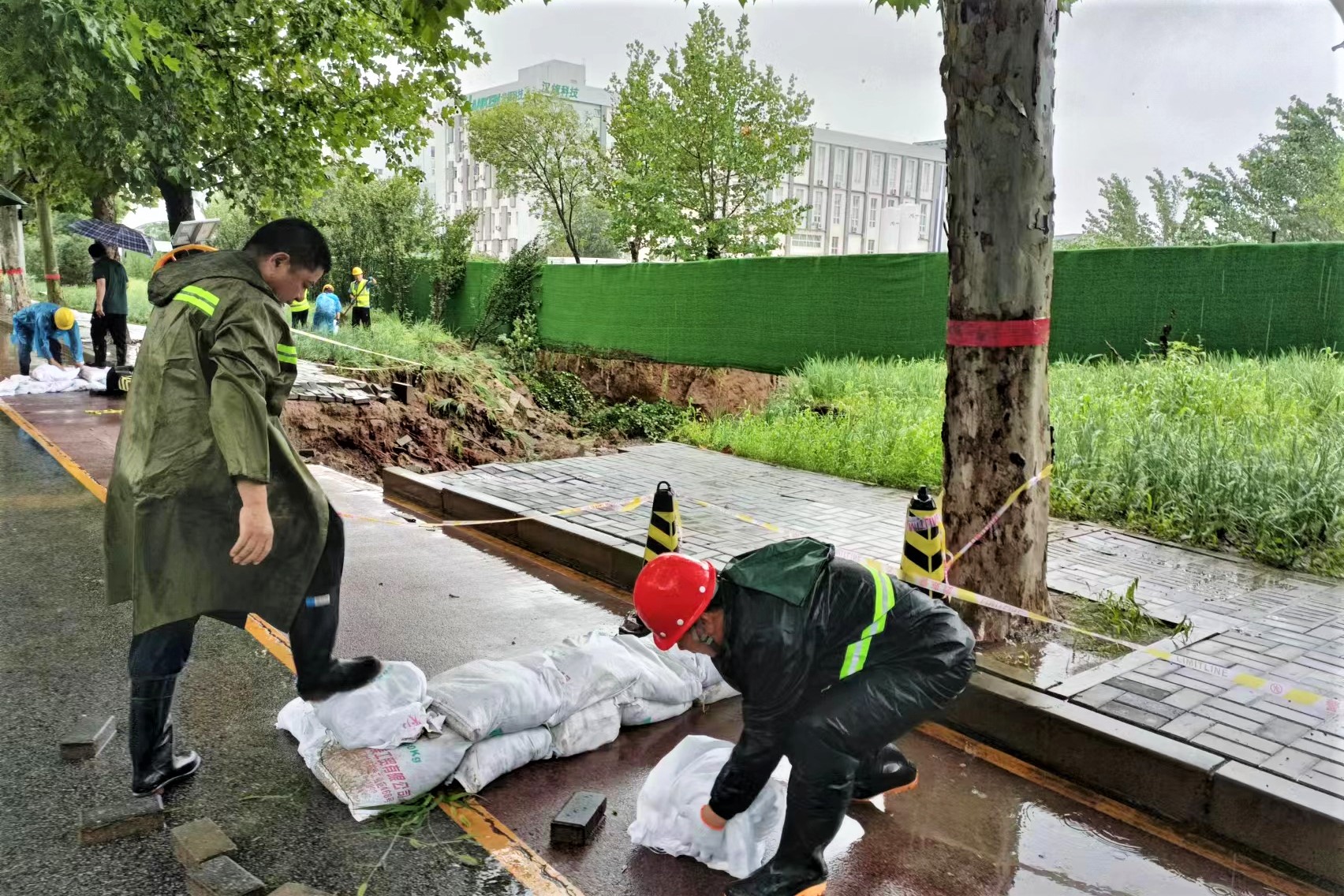 7月31日上午,在河北固安,中鐵二十局固安空港新城項(xiàng)目的團(tuán)隊(duì)在接固安縣工業(yè)園區(qū)請(qǐng)求后,立即組織人員、物資設(shè)備等對(duì)已經(jīng)發(fā)生道路坍塌的迎賓路進(jìn)行圍擋作業(yè),接續(xù)開(kāi)展險(xiǎn)情處置、助力恢復(fù)生產(chǎn)生活秩序,努力將暴雨影響降至最低。