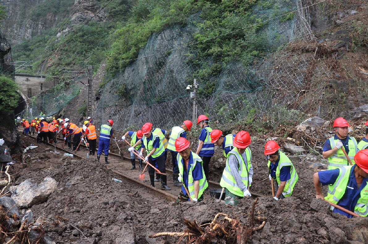 7月30日,受北京特大暴雨影響,三輛列車(chē)受困??吭诒本╅T(mén)頭溝妙峰山鎮(zhèn)山區(qū)。由于交通完全阻隔,災(zāi)情仍在持續(xù),現(xiàn)場(chǎng)救援刻不容緩。8月1日晚上9點(diǎn)半,接上級(jí)通知,中鐵十四局京唐、石港、雄商、雄忻、津滄等北京周邊項(xiàng)目共275人連夜趕赴北京門(mén)頭溝搶險(xiǎn)一線,搶修被山體沖刷的淤泥、樹(shù)根、巨石覆蓋的鐵路路基,為受困列車(chē)旅客拉通逃生通道。