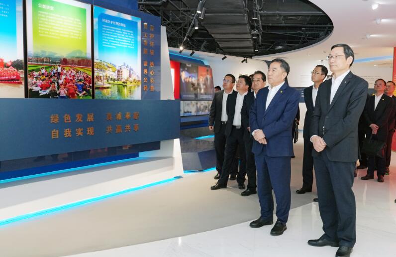 會(huì)談前,宋海良一行參觀了中國(guó)建材企業(yè)展廳。