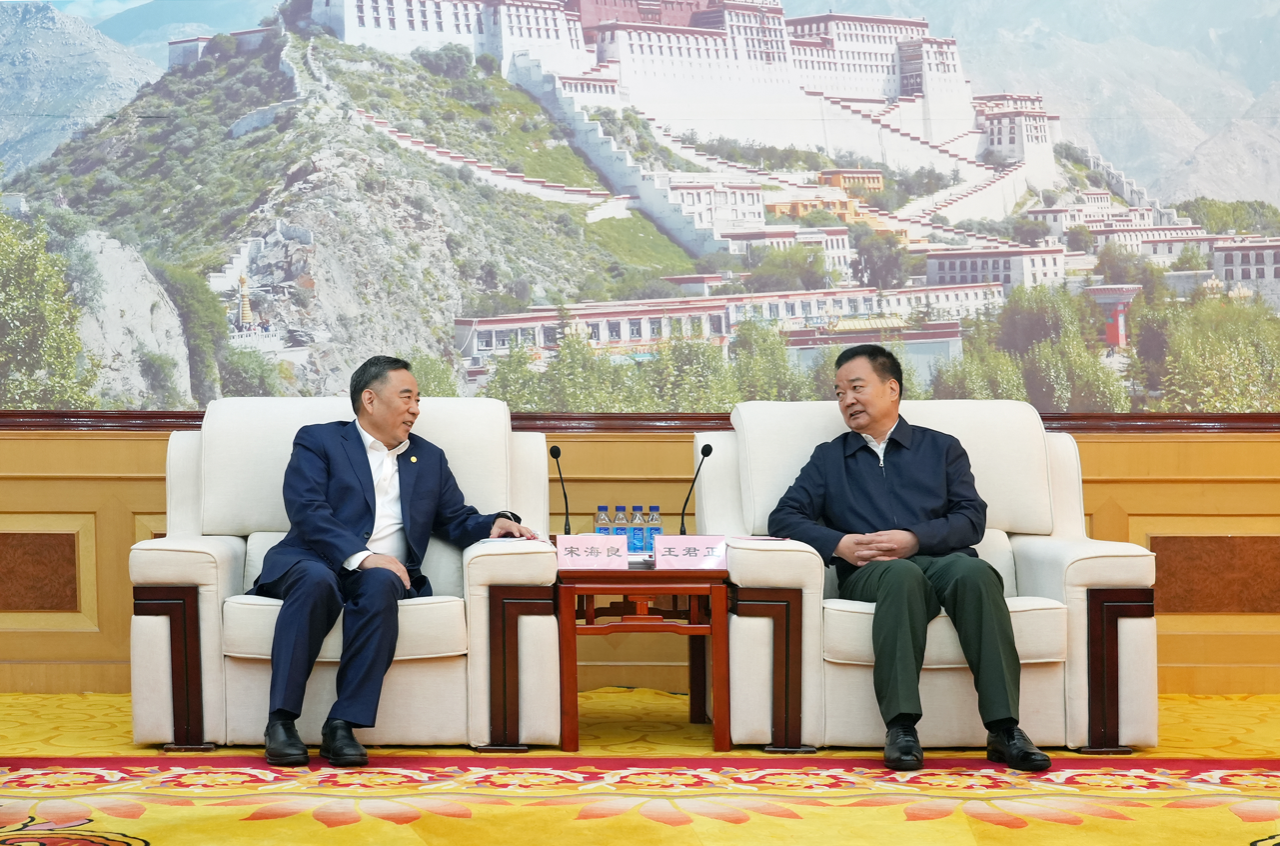 王君正對宋海良一行表示歡迎,并感謝中國能建長期以來給予西藏經濟社會發(fā)展的支持和幫助。他表示,當前,西藏正在深入貫徹落實習近平總書記關于西藏工作的重要指示和新時代黨的治藏方略,堅持“三個賦予一個有利于”總要求,聚焦穩(wěn)定、發(fā)展、生態(tài)、強邊“四件大事”,扎實推進“四個創(chuàng)建”,推動經濟社會各項事業(yè)發(fā)展不斷取得新成績,發(fā)展質量和效益明顯提升,各族群眾的獲得感、幸福感、安全感持續(xù)增強。中國能建作為我國能源電力和基礎設施建設領域的國家隊、主力軍,認真貫徹落實黨中央決策部署,在推動西藏清潔能源開發(fā)、基礎設施建設、鄉(xiāng)村振興等方面作出了積極貢獻,彰顯了央企的政治擔當和社會責任。他說,西藏資源豐富,比較優(yōu)勢明顯,能源開發(fā)潛力巨大,希望中國能建統(tǒng)籌自身資源和國家賦予西藏的特殊政策,積極發(fā)揮人才、技術、資金、管理等優(yōu)勢,在清潔能源開發(fā)利用、產業(yè)發(fā)展、人才援藏、鄉(xiāng)村振興等方面向西藏提供更大支持,助力西藏加快構建現(xiàn)代化產業(yè)體系,切實把西藏資源優(yōu)勢、政策優(yōu)勢轉化為創(chuàng)新優(yōu)勢、經濟優(yōu)勢、發(fā)展優(yōu)勢,推動社會主義現(xiàn)代化新西藏建設取得新成效。