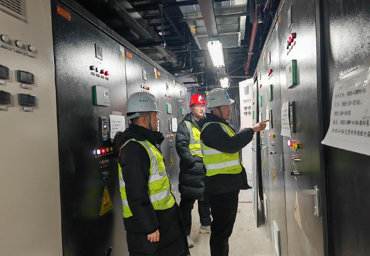 “必須保證所有變電所分閘,防止重新送電時電流直接沖擊設備”“屋面泵房再去兩個人,重新起泵并保證壓力正常”“拿好對講機,一間屋一間屋地送電”……現場總指揮、項目生產經理閆鵬的聲音堅定有力,全體值班人員嚴陣以待,緊張有序地執(zhí)行著操作指令。送電后,屋面泵房傳來水泵“轟隆隆”的機器運轉聲。調試成功有效驗證了柴發(fā)機組自身穩(wěn)定性和機組系統負荷控制能力,值班人員激動地歡呼。