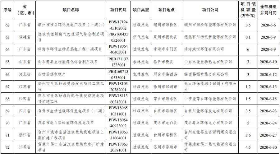 關(guān)于公布2020年生物質(zhì)發(fā)電中央補貼項目申報結(jié)果的通知