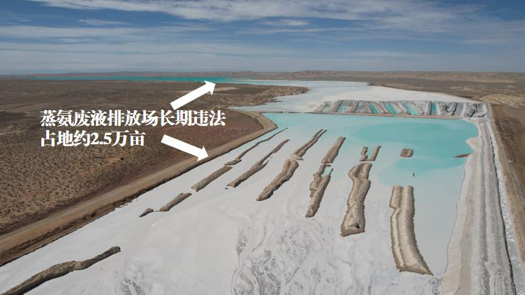 ▲圖3 2023年9月,督察組暗查發(fā)現(xiàn),青海發(fā)投堿業(yè)公司、中鹽青海昆侖堿業(yè)公司蒸氨廢液排放場(chǎng)長(zhǎng)期違法占地約2.5萬(wàn)畝