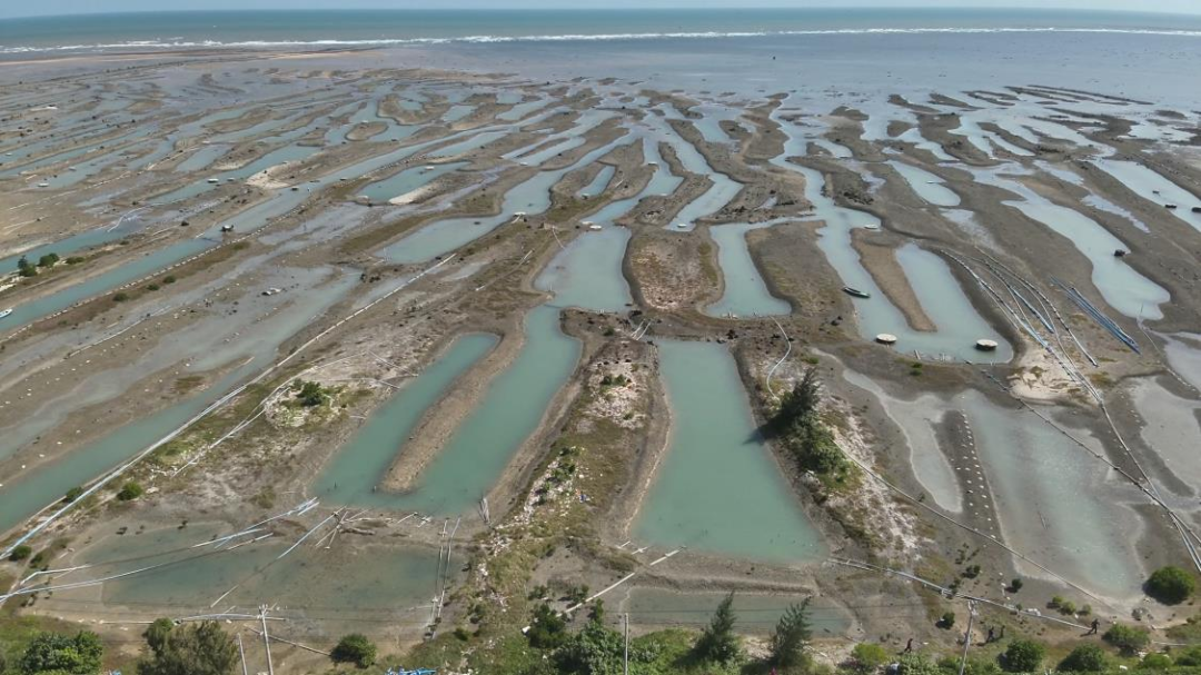 ▲圖4 2023年11月22日,督察組現(xiàn)場(chǎng)督察使用無(wú)人機(jī)拍攝,清瀾紅樹(shù)林省級(jí)自然保護(hù)區(qū)大量養(yǎng)殖塘取排水設(shè)施導(dǎo)致海灘被嚴(yán)重?cái)_動(dòng)侵蝕,溝壑密布,觸目驚心