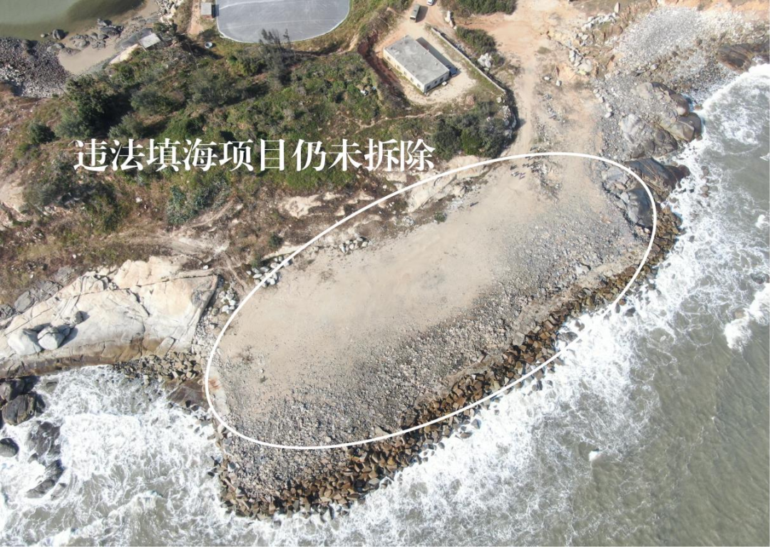 ▲圖2 2023年11月25日,督察組現(xiàn)場(chǎng)督察使用無(wú)人機(jī)拍攝,發(fā)現(xiàn)漳浦縣赤湖鎮(zhèn)違法填海項(xiàng)目仍未拆除
