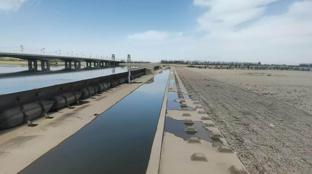 ▲圖3 2023年8月24日,督察組暗查發(fā)現(xiàn),甘州區(qū)在黑河新城大橋下游建設(shè)橡膠壩蓄水