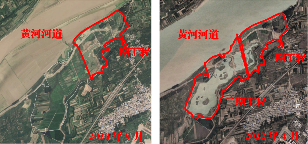 ▲圖1 2020年9月與2022年4月好陽(yáng)河濕地公園區(qū)域衛(wèi)星影像對(duì)比圖