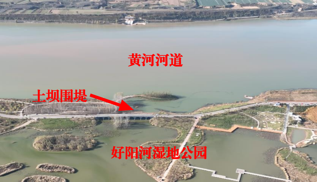 二是違規(guī)阻斷黃河干支流正常連通影響行洪安全。根據(jù)《河南省黃河河道管理辦法》劃定范圍,好陽(yáng)河濕地公園所在的入黃河口區(qū)域是黃河的河道管理范圍,三門(mén)峽城鄉(xiāng)示范區(qū)未按規(guī)定將好陽(yáng)河濕地公園建設(shè)方案報(bào)黃河河道主管部門(mén)審核,而且違反河道管理?xiàng)l例關(guān)于“在河道管理范圍內(nèi),禁止修建圍堤、阻水渠道、阻水道路”等管理規(guī)定,在好陽(yáng)河入黃河口處違規(guī)修筑土壩圍堤,防止黃河高水位時(shí)淹沒(méi)好陽(yáng)河濕地公園,從而阻斷黃河干流與好陽(yáng)河正常連通,影響河道行洪安全。