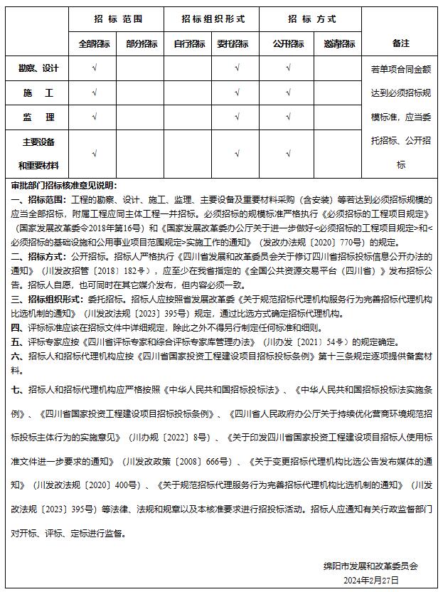 綿陽市發(fā)展和改革委員會招標(biāo)核準(zhǔn)意見