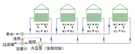 序批沉降流程介紹:序批沉降包括三個階段,即進水階段→靜止沉降階段→排水階段。采用的沉降罐個數(shù)為4座(同一時間1座罐進水、1座罐排水、2座罐靜止沉降),來水首先滿負(fù)荷進入4個沉降罐中的1個,與此同時,另外2座沉降罐靜止沉降,剩下1個沉降罐排水;當(dāng)?shù)?個沉降罐進滿水后開始進行靜止沉降,與此同時,原先進行靜止沉降的2座沉降罐其中1座已經(jīng)沉降12h,開始排水,另外1座繼續(xù)靜止沉降,剩下的1個沉降罐已排空,開始進水,而后依次循環(huán)來實現(xiàn)序批式靜止沉降。