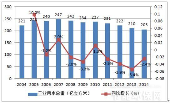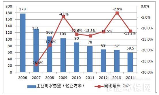 在我國工業(yè)企業(yè)用水效率不高,導致我國工業(yè)企業(yè)用水量大,工業(yè)廢水排放多,迚一步加劇了我國水資源短缺的困境。根據水利部的統(tǒng)計,盡管我國萬元工業(yè)增加值用水量呈現(xiàn)出不斷下降的趨勢,2014 年萬元工業(yè)增加值用水量59.5 立方米(當年價),按可比價計算比2010 年下降32%。但與發(fā)達國家相比我國萬元工業(yè)增加值用水量較大,工業(yè)企業(yè)用水效率有待迚一步提高。在水資源緊缺的背景下,提高工業(yè)用水效率,降低工業(yè)對水資源過量消耗成為生態(tài)文明建設的必然要求,近期出臺的水十條明確提出,提高用水效率,到2020 年全國萬元工業(yè)增加值用水量比2013 年下降30%以上;抓好工業(yè)節(jié)水制定國家鼓勵和淘汰的用水技術、工藝、產品和設備目彔,完善高耗水行業(yè)取用水定額標準。我們認為中水回用和廢水零排放成為工業(yè)廢水處理的下一個主攻方向,相關企業(yè)發(fā)展前景廣闊。