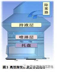 含塵煙氣通過托盤慣性力作用捕集大顆粒的粉塵(),在噴淋區(qū)煙氣與小液滴逆流接觸,慣性碰撞、攔截、擴(kuò)散、凝聚等作用捕集一部分粉塵,通過持液層鼓泡洗滌煙塵和霧滴,去除細(xì)顆粒粉塵、經(jīng)過水平煙道一套三級高性能煙道除霧器撞擊分離,捕集剩余的石膏液滴和細(xì)微粉塵,實(shí)現(xiàn)排放粉塵含量小于5mg/m3。