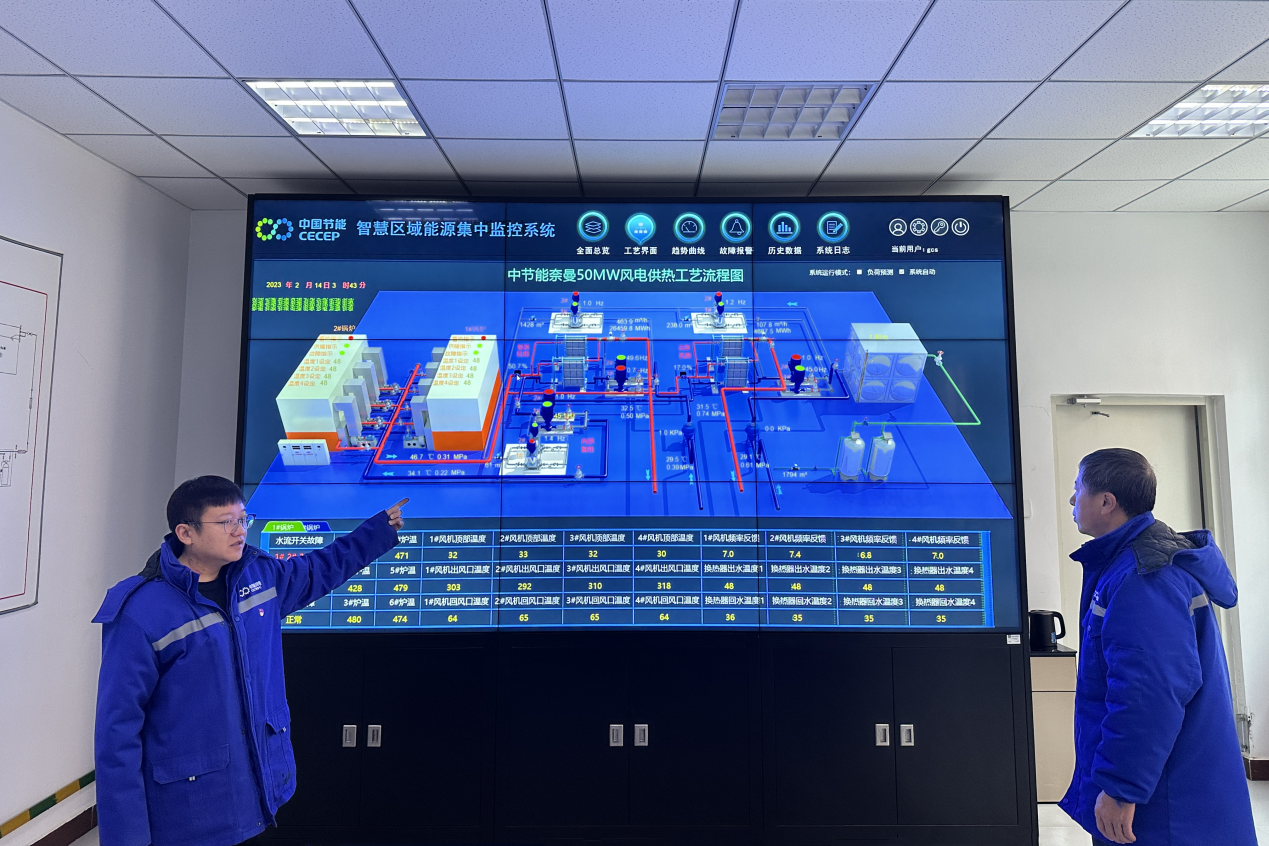 中國節(jié)能所屬風(fēng)電河南區(qū)域公司永興風(fēng)電場密切關(guān)注奈曼泰和新城供熱站供熱系統(tǒng)運行參數(shù)