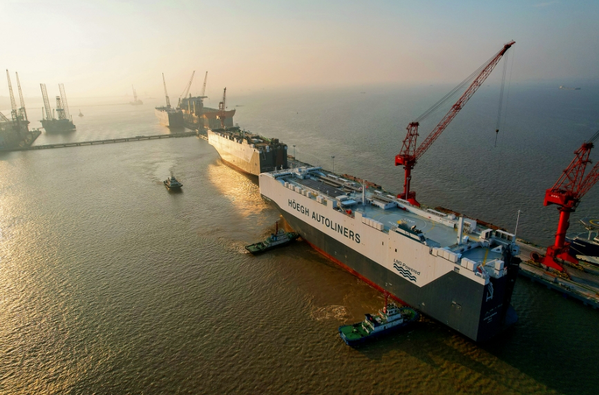 近日,招商局集團旗下招商工業(yè)海門基地建造的第一艘9100車雙燃料汽車滾裝船“禮諾極光”號,在海巡艇的引領(lǐng)和3艘拖輪的護航下,順利駛離船廠碼頭。該船是目前全球最大環(huán)保型汽車滾裝船,也是世界航運業(yè)綠色化、智能化發(fā)展的一個新起點。