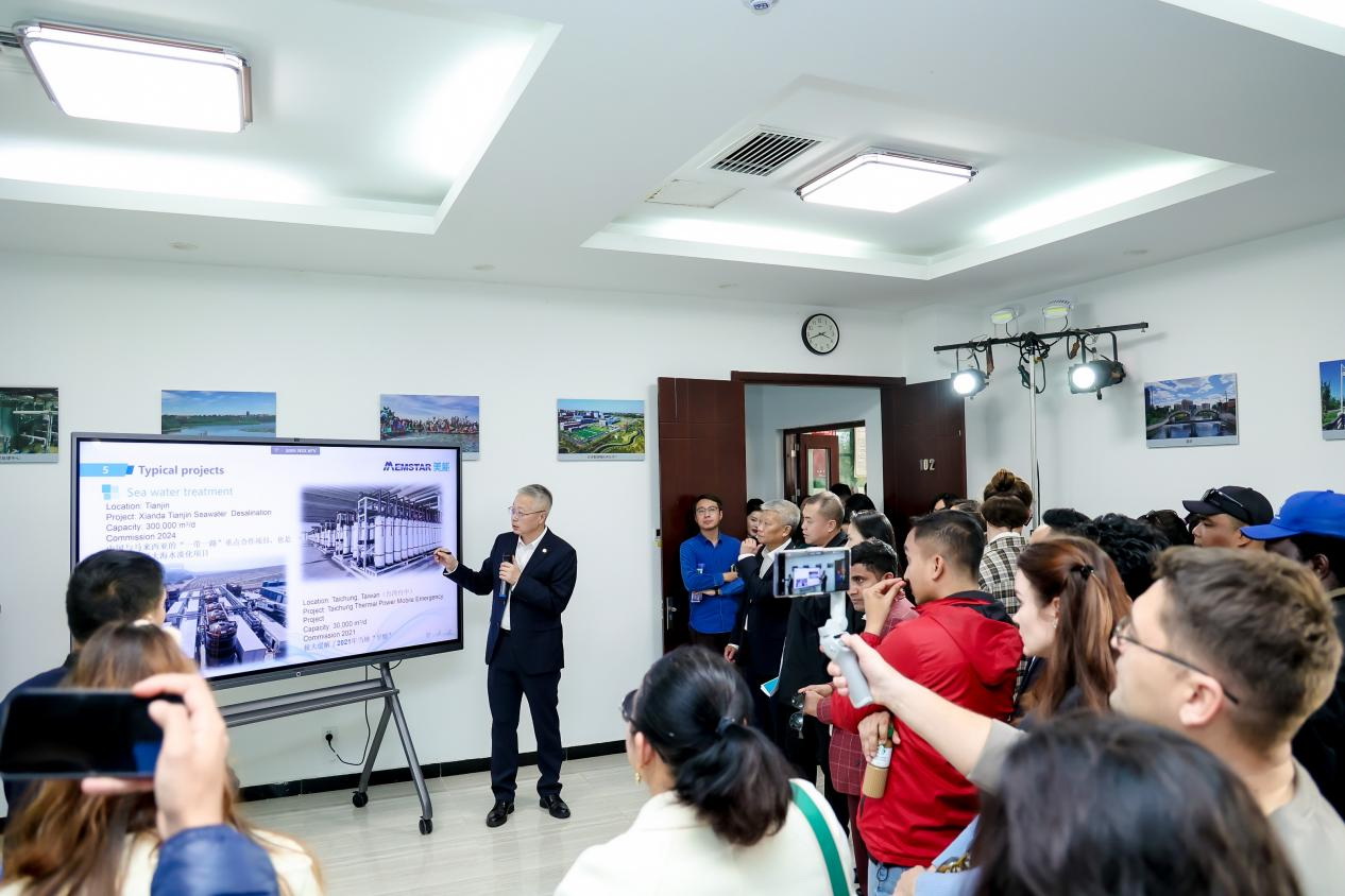 在近距離感受中信的水處理科技魅力后,在座談交流環(huán)節(jié),外媒對(duì)推動(dòng)全球環(huán)境治理的“中信方案”與“中信技術(shù)”興趣濃厚,圍繞如何平衡生態(tài)保護(hù)與經(jīng)濟(jì)發(fā)展、如何通過科技創(chuàng)新呵護(hù)綠色地球等話題,與中信環(huán)境展開熱烈而深入的交流。外媒團(tuán)記者將目光聚焦于中信環(huán)境的核心業(yè)務(wù)優(yōu)勢、美能膜技術(shù)亮點(diǎn)、海外市場布局、項(xiàng)目建設(shè)計(jì)劃等內(nèi)容,踴躍提問、積極發(fā)言。“中國茶與美能水給我們留下深刻印象,在水處理方面美能有何獨(dú)特技術(shù)優(yōu)勢?”“中信環(huán)境的生態(tài)技術(shù)和業(yè)務(wù)非常棒,未來是否有在中亞地區(qū)進(jìn)一步開拓市場的計(jì)劃?”“作為一家國際環(huán)保企業(yè),中信環(huán)境在不同地區(qū)有何不同市場策略?”“中信環(huán)境如何保證海外項(xiàng)目的可持續(xù)發(fā)展?”……熱盼合作的情緒在交流中不斷升溫,為座談會(huì)營造了更加積極和富有建設(shè)性的氛圍。