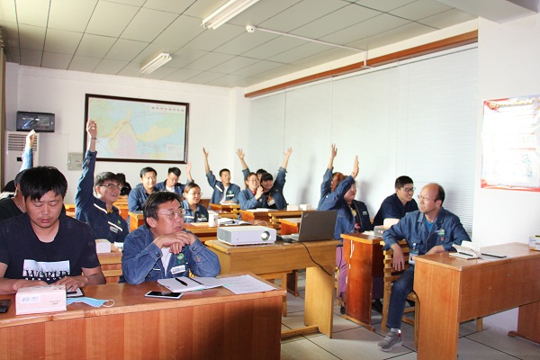 隨后,所安全員李燾同志又組織開展了安全知識競賽活動,知識競賽以口述問答與搶答形式進行,題目緊緊圍繞安全生產(chǎn)月主題,涉及知識面廣,內(nèi)容豐富,實用性強,現(xiàn)場選手們認真對待每一題,搶答環(huán)節(jié),現(xiàn)場氣氛尤其激烈,分秒必爭,以答對題的數(shù)量選出答題最佳選手。