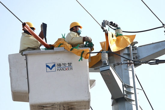 中國電力網(wǎng)訊 1月12日,在濰坊壽光市田柳鎮(zhèn)朱家村,國網(wǎng)壽光市供電公司帶電作業(yè)人員對10千伏后疃線127號桿加裝絕緣護(hù)套,同時對裸露部分進(jìn)行絕緣化封包處理,及時消除線路運行隱患,保障電網(wǎng)迎峰度冬期間安全可靠運行。