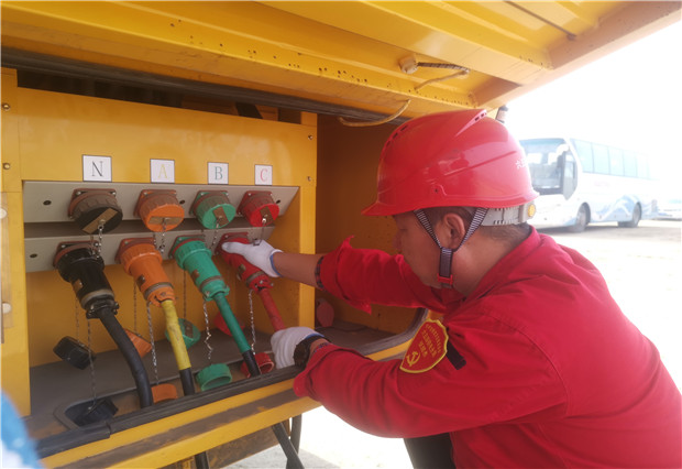 在接到開工儀式保電工作任務(wù)后,六五四供電分局高度重視,積極對接政府部門,了解用電需求,制訂詳細(xì)的保供電方案,落實(shí)專人負(fù)責(zé)、服務(wù)到位,提前一天組織分局黨員突擊隊的保電人員對涉及活動區(qū)域的重要線路和電力設(shè)備開展常態(tài)巡視,排查并消除可能出現(xiàn)影響正常供電的安全隱患和缺陷,保障保電工作零故障、零停運(yùn),并根據(jù)現(xiàn)場需要,準(zhǔn)備發(fā)電車一輛供儀式現(xiàn)場用電設(shè)備使用,全力打造項目開工儀式保電安全網(wǎng)?;顒赢?dāng)日上午,工作人員及發(fā)電車提前進(jìn)入保電現(xiàn)場,連接、調(diào)試開工儀式用電設(shè)備,并對相關(guān)設(shè)備進(jìn)行了檢查,蹲守保電現(xiàn)場,提高保電機(jī)動性,確保了開工儀式用電萬無一失。