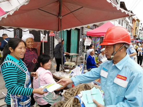 圖為謝壩供電所在市坪鄉(xiāng)街上開(kāi)展安全用電、節(jié)約用電宣傳活動(dòng)