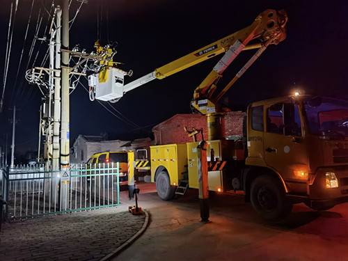 接到通知的應急搶修小組五人以最快的速度到達單位,此時此刻幾人臉上睡意全無,已然投入到搶修狀態(tài)當中。在了解完搶修任務后幾人馬上行動起來進行準備工作。二十分鐘后所有人員出發(fā),在車上,工作負責人張于斯強調道:“現在是凌晨,外面氣溫達到零下二十一度,如果你們要是在上面進行更換熔斷器的時候有任何身體上的不適都要立即停止工作,下來暖和一會兒再干,干的慢點不怕,要保證身體處于一個良好的狀態(tài),安全才是最基本的工作前提條件。”到達現場后,該處人員與礦區(qū)分公司負責人進行工作任務對接,重合閘退出并許可工作后,立即開始搶修。天寒地凍,讓搶修人員隔著三層防護手套依舊無法阻擋冷空氣將雙手凍僵,但在絕緣斗臂車上操作的人員手上的速度并沒有因此而放慢,經過三十分鐘的努力將損壞的熔斷器更換完成。為了避免二次事故,該處的搶修人員需要等送電完成才能離開,完成搶修后礦區(qū)供電分公司的同事立刻安排送電,低壓開關合上所有在場的工作人員的心同街道上的路燈一起明亮了起來,他們在黑夜里堅守在崗位上準備迎接新一年的到來。