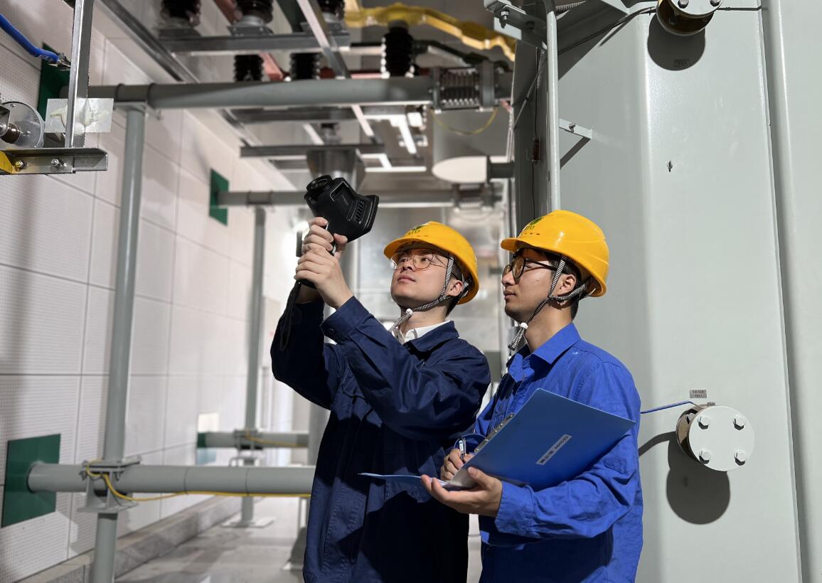 中國電力網(wǎng)訊(通訊員:史科揚)“1、2號主變運行良好,油溫油位均在正常范圍內(nèi),紅外測溫正常,全站滅火器均在保質(zhì)期內(nèi)……”5月10日,余姚市宏宇輸變電工程公司巡視人員來到110千伏雙河變,仔細(xì)地對站內(nèi)設(shè)備進行測溫體檢,為電網(wǎng)心臟“把脈問診”,全力保障電網(wǎng)安全可靠運行。