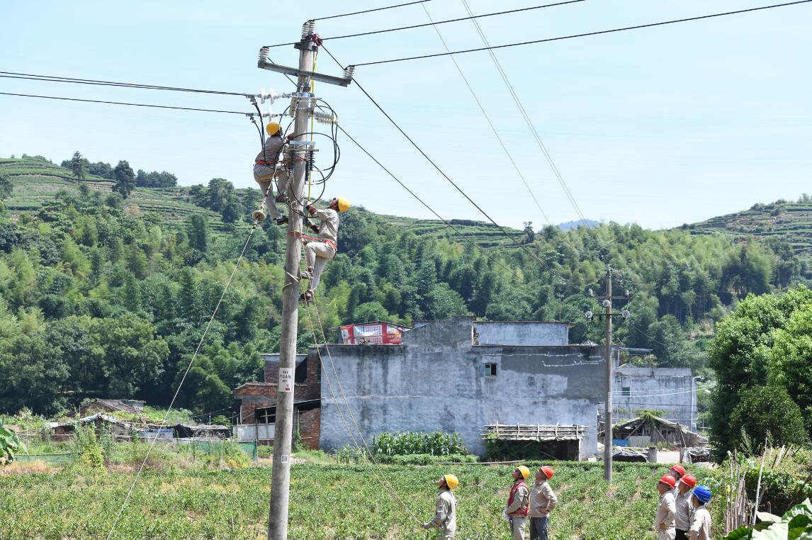 在經(jīng)過近一個半小時的高空作業(yè),作業(yè)人員順利將新增變壓器的線路連接到了10千伏村邊支線1號桿上,完成了此次帶電作業(yè)任務。下桿后的作業(yè)人員臉龐被曬得通紅,個個衣服全部濕透,接過同事遞過來的水,一口氣灌入口中。