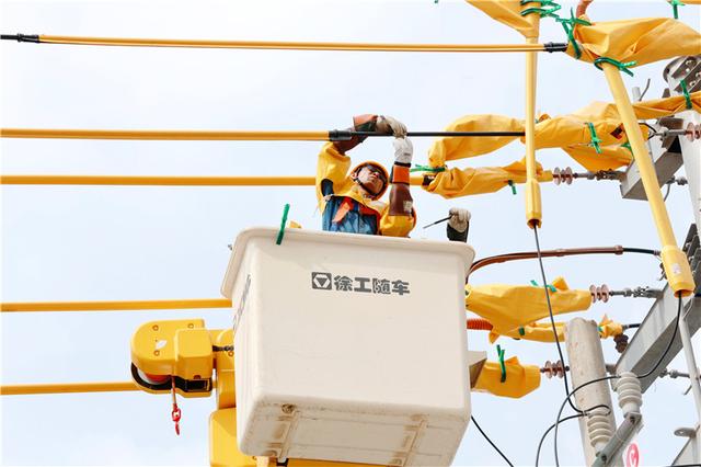 國(guó)網(wǎng)利辛縣供電公司帶電作業(yè)員工正在進(jìn)行絕緣遮蔽工作。劉喆攝