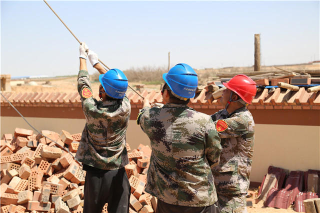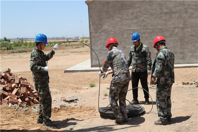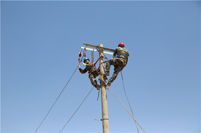 施工當(dāng)天烏海地區(qū)高溫來(lái)襲,施工難度陡增,六五四供電分局黨員突擊隊(duì)成員在三十五攝氏度的高溫下,頭頂烈日、腳踏電桿。按照分工干脆利落的進(jìn)行立桿、安裝橫擔(dān)、緊線(xiàn)等工作。經(jīng)過(guò)3個(gè)小時(shí)的作業(yè),終于順利地為此貧困戶(hù)送上電。貧困戶(hù)張占飛的母親非常激動(dòng)。“原先以為只是簡(jiǎn)單修一下,沒(méi)想到還需要這么多步驟,他們做得這么細(xì)致、這么認(rèn)真,真的是非常感謝他們。”