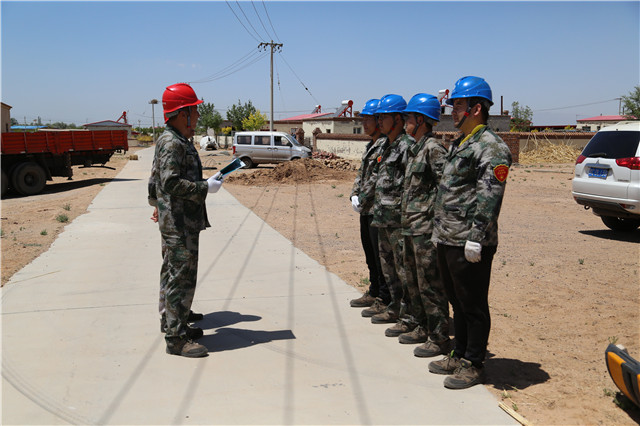 6月3日一早,一行人前往距市區(qū)90公里的海南區(qū)巴音陶亥鎮(zhèn)紅墩村張占飛的家中。為及時(shí)高效完成貧困戶(hù)家中用電問(wèn)題,六五四供電分局分局局長(zhǎng)王軍永帶領(lǐng)黨員突擊隊(duì)成員迅速在工作現(xiàn)場(chǎng)召開(kāi)班前會(huì),對(duì)工作班成員進(jìn)行了詳細(xì)的分工。由于此戶(hù)周邊沒(méi)有可以直接利用的電源,需要重新架設(shè)一基電桿把電源引到房屋附近。分局黨員突擊隊(duì)成員立即分成兩組,一組負(fù)責(zé)立桿安裝金具,另外一組負(fù)責(zé)放線(xiàn)。