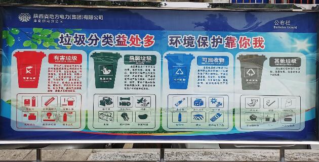 中國電力網(wǎng)訊(通訊員 李娟攝影報道)為倡導綠色生態(tài)、健康環(huán)保的生活方式,進一步倡導垃圾分類理念,近日,淳化供電分公司更新公司文化宣傳欄,對有害垃圾、易腐垃圾、可回收垃圾、其他垃圾等通過圖文并茂的方式做了詳細說明,通過宣傳推廣,營造人人關(guān)心垃圾分類、踐行垃圾分類的良好氛圍,讓"綠色、環(huán)保、低碳"的理念深入人心,從不而斷提高大家自覺愛護環(huán)境衛(wèi)生的意識,讓垃圾分類從口號變?yōu)榱晳T。
