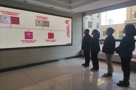 在第八個(gè)“12.4”國家憲法日來臨之際,該公司計(jì)劃于11月29日起,組織開展為期一周的2021年“12.4”國家憲法日暨憲法宣傳周活動(dòng)。為營(yíng)造良好的法治氛圍,該公司利用各類宣傳展架、門廳LED大屏滾動(dòng)播放《憲法》等重要法律法規(guī)解讀動(dòng)畫,并依托共產(chǎn)黨員服務(wù)隊(duì)成立6支“普法小分隊(duì)”,開展法律法規(guī)進(jìn)企業(yè)、進(jìn)機(jī)關(guān)、進(jìn)班組“三進(jìn)”普法活動(dòng),實(shí)行分眾普法、精準(zhǔn)普法。