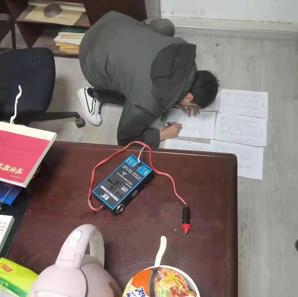 寒潮來襲,城區(qū)家用負荷急劇上升,用戶開關(guān)故障跳閘不時發(fā)生,春節(jié)保電任務(wù)異常艱巨。工作人員的手機一直響個不停,足足6頁的接警記錄,桌子上放不下,只能趴在地上寫,搶修的工作人員不是在搶修現(xiàn)場,就是在奔赴下一個搶修現(xiàn)場的路上。