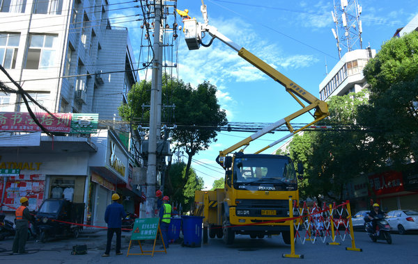 當(dāng)日早上5時(shí)30分,在施工現(xiàn)場圍好護(hù)欄、掛好提示路牌、進(jìn)行技術(shù)交底后,帶電作業(yè)班成員李強(qiáng)、闕華斌穿上厚重的絕緣服、戴上絕緣手套,熟練地爬上絕緣車斗內(nèi),車臂緩緩上升,進(jìn)入作業(yè)區(qū)域?qū)?dǎo)線進(jìn)行絕緣遮蔽,各項(xiàng)工作密切配合有序進(jìn)行,作業(yè)人員的汗水順著臉頰往下流,經(jīng)過近2個(gè)多小時(shí)的共同奮戰(zhàn),作業(yè)任務(wù)順利完成。當(dāng)作業(yè)人員回到地面,絕緣服內(nèi)的衣物已經(jīng)完全濕透,來不及脫下厚重的絕緣服,拿起一瓶礦泉水“咕咚咕咚”一飲而盡。