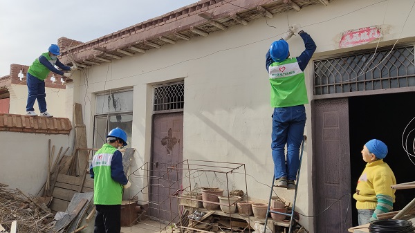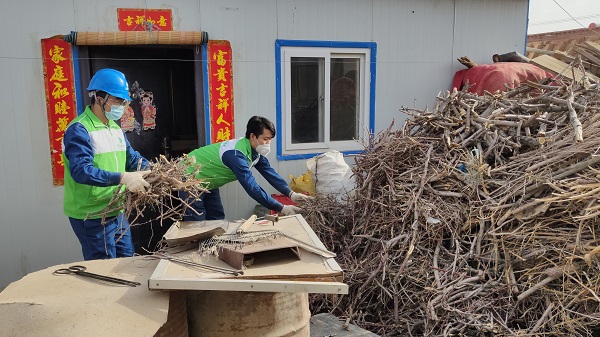 志愿者首先對老人家中用電設(shè)備和線路進行了檢查,通過檢查發(fā)現(xiàn)接戶線老化嚴重,部分絕緣層已經(jīng)破損,存在一定安全隱患。發(fā)現(xiàn)該情況,志愿者立即與烏力吉營業(yè)所溝通,準備工器具和導(dǎo)線為其重新更換接戶線,消除了安全隱患。隨后,志愿者來到老人家院外,幫助她撿拾樹枝,劈開后送到院內(nèi)充當柴禾,并幫老人對小院子進行了打掃。最后志愿者為老人送上米面油等生活用品和真摯的祝福。