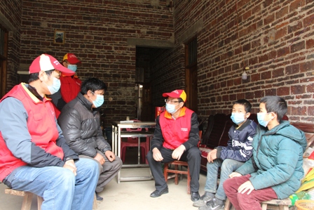 今年受新冠病毒疫情的影響,學(xué)校還未正常開學(xué),孩子們都在家中自行學(xué)習(xí),隊員采取逐戶上門探望的方式開展服務(wù)活動。在李志成、李志祥同學(xué)家中,兩兄弟正一起埋頭溫習(xí)功課,看到‘紅馬甲’叔叔們在這個時期里來到家里,兩兄弟高興得跳了起來,大聲的呼喊在對面山上挖筍的爸爸趕快回家。兄弟倆的媽媽離家出走十多年未回,爸爸又患上了間歇性精神病,三父子相依為命,生活來源主要依靠農(nóng)村低保補助和叔叔的資助,家境貧困令人心酸??吹絻尚值芘d高采烈地拿著叔叔們給的‘紅包’,李爸爸眼中充滿了晶瑩和感動,緊緊地握著隊員們的手無法言語。李依婷同學(xué)是六年級班上唯的女生,文靜秀氣不愛言語,由于父母離異后紛紛外出,小依婷跟著年邁的奶奶共同生活,學(xué)習(xí)非常刻苦,成績在班上排名前列,隊員們?yōu)樗蜕狭伺D毯臀繂柦?,和她一起翻閱了學(xué)習(xí)筆記,親切鼓勵她要努力學(xué)習(xí),好好報答奶奶的養(yǎng)育之恩···