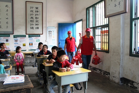 當(dāng)天活動中,服務(wù)隊(duì)員為孩子們發(fā)放了學(xué)習(xí)用品和牛奶,鼓勵他們要從小養(yǎng)成不畏困難、勇敢攀登的學(xué)習(xí)精神,克服一切困難,勤奮努力學(xué)習(xí);隊(duì)員們特意為六年級的8位同學(xué)帶來了“小升初”全套模擬試卷,激勵他們緊緊抓住剩下的兩個月時間,再努一把力、再加一把油,在小學(xué)升初中的考試中取得好成績,順利步入新學(xué)校繼續(xù)學(xué)業(yè);服務(wù)隊(duì)員們還入戶走訪了家庭特別困難的李志成、李志祥兩兄弟,為他們送上了助學(xué)金,鼓勵他們面對困難要自強(qiáng)不息,同時叮囑家長要多關(guān)心孩子思想和學(xué)業(yè),呵護(hù)他們健康快樂成長。