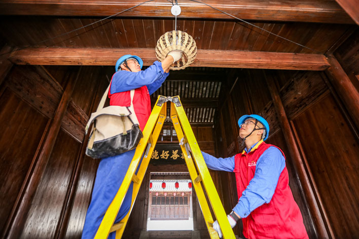 隨著秋冬季干燥氣候的到來,考慮到走馬樓的特殊木質結構,國家電網(wǎng)浙江電力(鄞州)紅船共產黨員服務隊特意來到走馬樓,為該處做了一次綜合性的“體檢”工作。服務隊員重點對走馬樓的墻頭線、計量裝置進線以及計量裝置表后線進行了一一檢查,排查線路短路、絕緣老化和設備故障等運行隱患,針對照明設備損壞的情況,服務隊員利用自身技術技能,現(xiàn)場更換受損設備,共為走馬樓更換燈泡20盞,修復燈座15個。此外,供電人員還來到走馬樓另一側的居住區(qū),為其中居住的居民更換老舊表箱,消除居民日常生活中的用電隱患。為了保障走馬樓的日常用電安全,服務隊員還向管理人員進行了安全用電知識的科普宣傳,叮囑管理人員注意木質結構房屋的用電安全,謹慎使用大功率電器,以免發(fā)生火災。