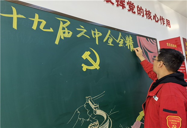 “線下”單位的青年黨員書寫黑板報(bào),為了讓單位全體職工更全面、更及時(shí)地了解會(huì)議精神,黨員將十九屆六中全會(huì)的會(huì)議重點(diǎn)內(nèi)容經(jīng)過精心設(shè)計(jì)、編排,搬到了單位的黑板上。正在黨員活動(dòng)室閱讀黑板報(bào)的積極分子說:“這個(gè)板報(bào)對(duì)全會(huì)的內(nèi)容歸納清晰、通俗易懂,這樣的學(xué)習(xí)形式讓我好像一下回歸學(xué)生時(shí)代,很受大家的歡迎。”除此之外,六五四供電公司黨支部還組織黨員結(jié)合工作崗位深入交流研討、撰寫心得體會(huì),在學(xué)習(xí)中談?wù)J識(shí)體會(huì)、話發(fā)展變化,深化思想啟迪、促進(jìn)共同提高。
