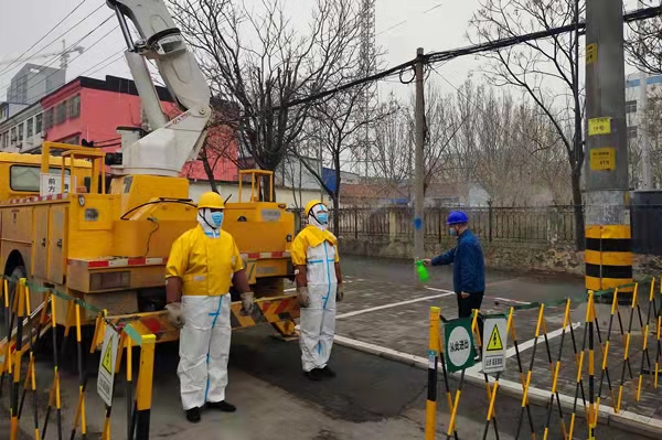 為保障禹城市民疫情下安全,禹城市已實行居家封閉。禹城公司身處一線的帶電作業(yè)班青年員工立足本職崗位,作業(yè)現(xiàn)場,該公司帶電作業(yè)人員做好防疫現(xiàn)場消毒,做好各項安全措施,全力保證疫情期間電網(wǎng)安全運行,為疫情下轄區(qū)群眾正常生活提供可靠的電力保障。