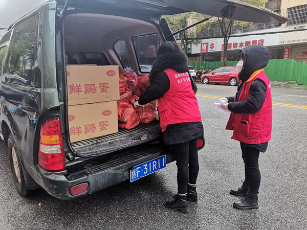 “您好,您需要的菜品我們已經(jīng)買回來了,放在您的家門口,您方便了出來取一下。”這是青年黨員覃婕這些天來重復(fù)最多的話,在中興小區(qū)還有很多和覃婕一樣的“青春面孔”,他們主動(dòng)充當(dāng)小區(qū)居民的跑腿員,為大家采買送遞,正是因?yàn)橛辛怂麄兊呐芮芭芎?,居民們的基本生活物資才得以正常供應(yīng),才能夠更安心的“宅”在家里,說起他們,社區(qū)和居民都是一片褒獎(jiǎng)之詞。
