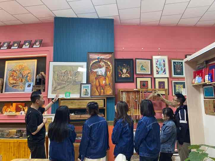 本次活動內(nèi)容豐富,黨員干部職工積極前往阿拉善盟非物質(zhì)文化遺產(chǎn)皮雕藝術(shù)傳承研究展示中心參觀并體驗非遺文化皮雕技藝。首先,由阿拉善盟非物質(zhì)文化遺產(chǎn)傳承人“皮雕匠人”張浩老師向大家介紹皮雕技藝在阿拉善地區(qū)傳承發(fā)展的歷史以及在展的各種皮雕藝術(shù)品,并現(xiàn)場演示了皮雕制作的基本技法,緊接著帶領(lǐng)大家制作傳統(tǒng)皮質(zhì)鑰匙包。職工們熱情高漲,紛紛動手操作,開料、刻線、描摹、染色、縫線,皮面和針線來回穿插,充分體驗到了非遺的魅力和手作的樂趣,最后在緊張刺激的民族團(tuán)結(jié)知識問答題中結(jié)束了本次活動。