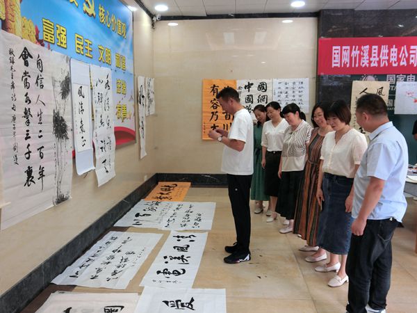 9月19日,國網(wǎng)竹溪縣供電公司第二屆“清廉國企”書畫筆會在機(jī)關(guān)一樓大廳舉行,書畫創(chuàng)作者們充滿激情,現(xiàn)場揮毫潑墨,呈現(xiàn)了一幅幅充滿廉潔主題書法和繪畫作品。前來參展的員工們帶著濃厚的興趣,品味著這些作品。