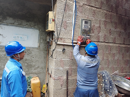 08月24日接到煙農(nóng)瞿世昌電話說他家武偉地墨武烤房用電不正常,由于接連幾日的大雨,導(dǎo)致山倒土塌因此車輛未能到達(dá)工作現(xiàn)場(chǎng)。詩(shī)禮供電所工作的光明使者趙瑞玨(工作負(fù)責(zé)人),帶領(lǐng)工作班成員(楊瑤、李金林)一同扛起所需安全工器具及個(gè)人安全防護(hù)用品徒步前行對(duì)瞿世昌戶用電排查,人們常說:安全是條繩,牽著千萬人,安全是根線,連著親人的掛念,故障處理后,瞿世昌拉著供電所員工的手非常感激,是供電所人員的及時(shí)到來,確保了他家的烤煙用電。