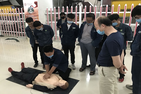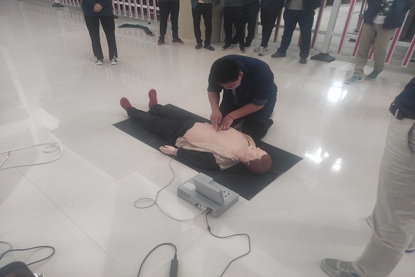 安全員李燾首先帶領大家觀看視頻教程,把心肺復蘇的整個過程,每一個細節(jié)都進行了認真的學習,隨后在模擬人上進行實際操作。安全員一邊做示范一邊講解如何掌握基本心肺復蘇的操作要點及注意事項,并通過對“模擬人”實施心臟復蘇搶救操作進行了演示,包括判斷是否喪失意識、判斷有無自主呼吸、判斷有無脈搏、進行胸外心臟按壓、清理口腔異物、開放氣道、人工呼吸等操作要領的示范。