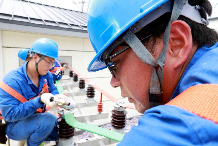 中國電力網(wǎng)訊 8月12日,安徽省定遠(yuǎn)縣二龍回族鄉(xiāng)中湯村,國網(wǎng)定遠(yuǎn)縣供電公司新建35千伏二龍變電站項目正在緊張施工中。當(dāng)日,攝氏33°高溫下,2臺主變壓器臺上,瓦斯噴燈的火苗呼呼作響,高空作業(yè)人員渾身汗水濕透,正在對母線鋁排進(jìn)行絕緣化處理。變電站控制室內(nèi),專業(yè)技術(shù)人員二次側(cè)安裝調(diào)試正在同步進(jìn)行。