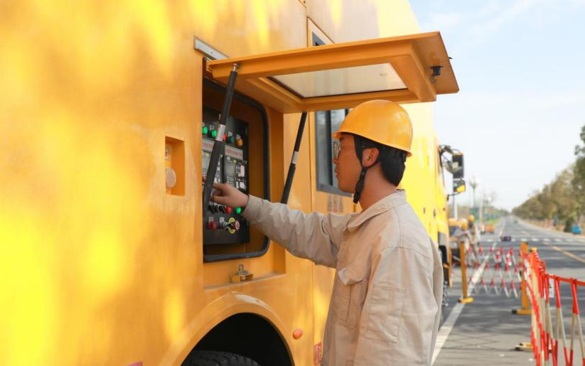 “相較傳統(tǒng)的配網(wǎng)計劃施工需要停電的情況,通過中、低壓發(fā)電車結(jié)合的形式,可以最大程度減少停電檢修的影響,保障周邊重要用戶在配網(wǎng)施工期間的正常用電。”溧陽供電運檢服務分中心工作人員項大衛(wèi)介紹道。