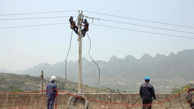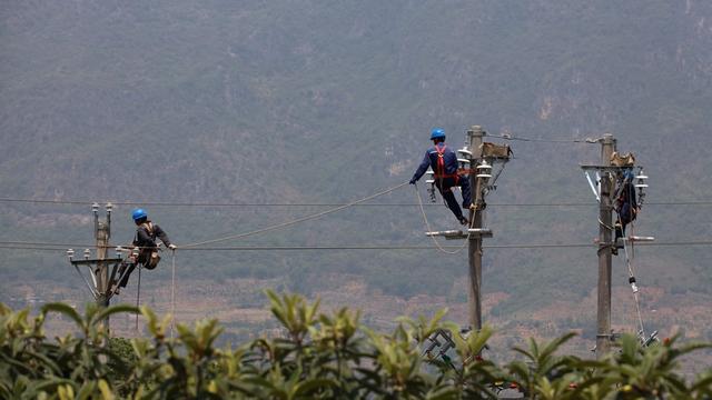10千伏興頂線施工現(xiàn)場(chǎng),多名工作人員正在作業(yè)。盧關(guān)文攝