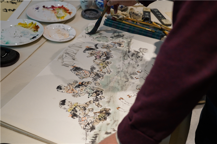 書朋畫友,筆墨傳道。書畫藝術(shù)家們和國(guó)網(wǎng)象山縣供電公司書畫愛(ài)好者們互動(dòng)交流,暢談創(chuàng)作體會(huì)、探討書畫技巧。更有書畫藝術(shù)家為國(guó)網(wǎng)象山縣供電公司青年員工講解書畫知識(shí),指點(diǎn)書畫要領(lǐng)。大家一起揮毫潑墨,切磋技藝,交流感情、共抒情懷,共同提高,促進(jìn)傳統(tǒng)文化建設(shè)。場(chǎng)面氣氛熱烈,洋溢著濃厚的文化氛圍。