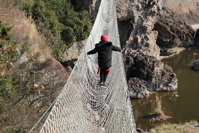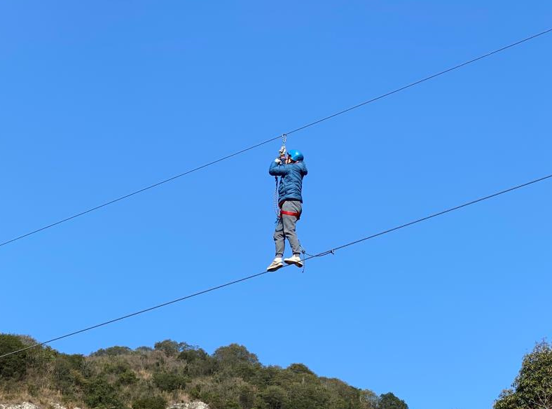 在飛拉達(dá)項(xiàng)目上,大家穿好防護(hù)裝置,在專業(yè)指導(dǎo)員的指導(dǎo)下,一點(diǎn)點(diǎn)攀上懸崖。大家循序漸進(jìn)的鍛煉膽量,在懸崖峭壁上行走的樂(lè)趣。讓所有恐懼隨著時(shí)間的推移和攀爬的動(dòng)力滿滿煙消云散。
