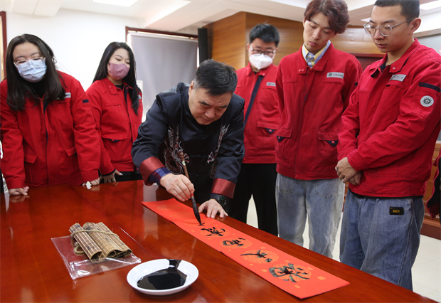 活動中不僅觀看了書法大家揮灑自如、展示書法魅力的書寫,還激發(fā)了職工學習書法的熱情。宋永江主席隨即在現場進行了書法傳授,用四句話講述了書法要點:分割均勻、舉一反三、學會分析、穿插移正。精準的教授,讓現場的青工們躍躍欲試。大家聚精會神地欣賞著剛寫好的春聯(lián),有的還跟著讀了出來。參加活動的書法愛好者劉亭汝說“春節(jié)是我們的傳統(tǒng)節(jié)日,貼對聯(lián)是象征吉祥,表達人們對美好生活的向往,很高興能為我們基層職工帶來這樣一份有意義的新春祝福。”新入職員工也表示宋主席的書法飄若浮云,矯若驚龍,字里行間流露出對單位員工真切的祝福,讓我們心里暖暖的。